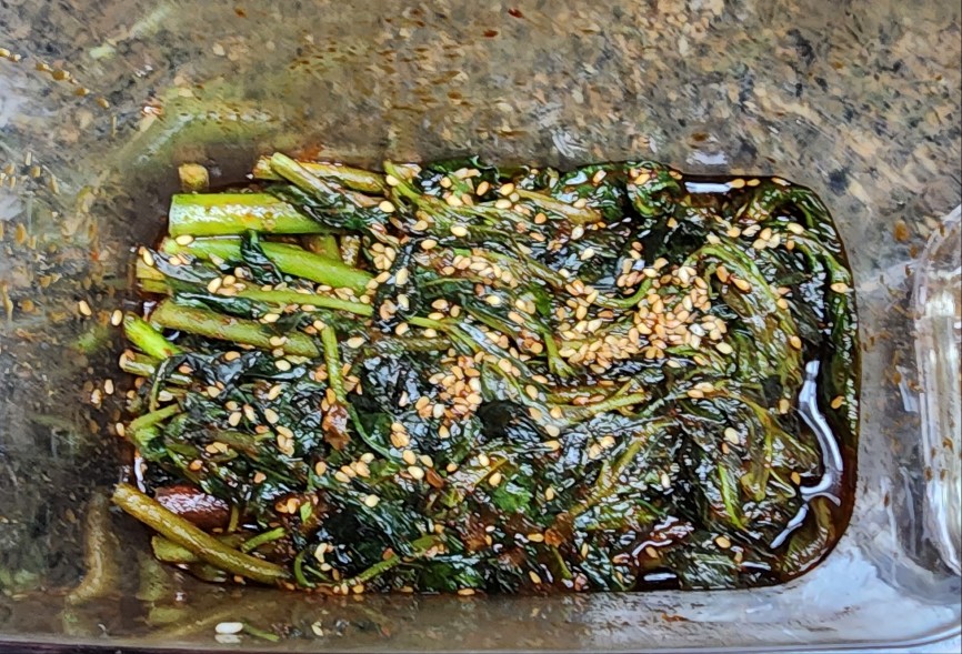 진간장 60g, 까나리액젓 30g, 고추장 100g, 갈색설탕 20g, 물엿 30g을 김치 담을 용기에다 투입하여 충분히 설탕이 녹을 만큼 혼합해 주고, 수쿠리에 담겨 있는 가죽나물을 양손으로 한 움큼씩 쥐고 물기를 꼭 짜내고 양념이 들어있는 용기에다 넣어서 쌀쌀 버무려 주고 간이 맞은 지 확인하고 저는 길쭉하게 담은 거라 가지런하게 그릇에 담았어요.