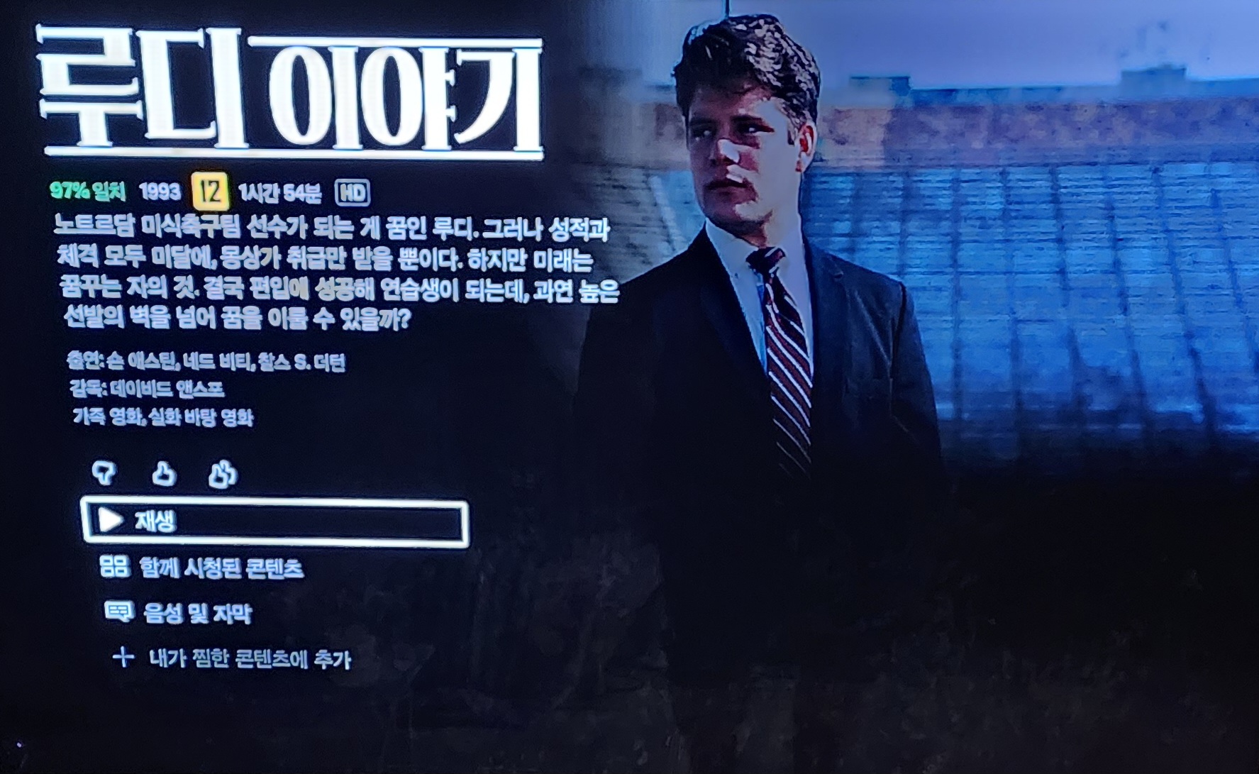 165cm가 채 안 되는 작은 체구의 그로서는 풋볼팀에 들어가서 훈련을 2년 동안 받으면서 부상을 입고 다쳐도 한 번도 훈련에 빠지지 않았던 루디를 코치조차도 루디만큼의 집념을 가지라고 선수들을 혼내는데 다른 선수도 이 왜소한 루디 때문에 팀원으로 융화가 되지 못하자 에이스급 선수는 루디에게 봐주지 않을 거라는 말에도 의기양양한 루디를 팀원으로 인정해 주기 시작합니다. 루디의 강한 열망은 끊임없는 노력을 가능하게 했고 욘토 코치의 도움으로 연습게임에서 뛸 수 있게 되었습니다. 그의 열의와 강인함은 동료선수들로부터 찬사를 받지만 정식 게임에는 출전하지 못합니다. 드디어 코치는 다음 시즌에 루디를 출전시킬 것에 동의하지만 새로운 수석 코치 디비 안은 그에 반대하는데, 주장부터 모든 선수들이 루디를 출전시키지 않는다면 경기를 뛰지 않겠다고 감독님 책상 앞에서 티셔츠를 모두가 반납하는 모습을 보여 우리 모두를 울컥하게 했습니다. 시합종료를 앞두고 출전을 못하는 루디, 하지만 이역시도 동료들의 떼창으로 감독이 어쩔 수 없이 출전을 시키는데, 그리고 언제나 TV로만 경기를 지켜보던 부모님도 그의 형제들이 루디가 뛰는 모습을 보고 환호를 하는데 오직 자신의 꿈을 위해서 달려가는 루디의 모습을 보면서 그 많은 관중들의 전객석 모두가 일어나서 손뼉과 환호성으로 축하를 해주는데 가슴이 뭉클했습니다. 1975년 이후로 그 누구도 노트르담 구장을 그렇게 열광시킨 선수는 없었다고 합니다. 노트르담 대학의 실제 전설적인 풋볼 선수가 된 루디는 1976년 노트르담 대학을 졸업했고, 루디의 다섯 동생들은 모두 대학에 들어가 학위를 수여받았습니다. 대다수의 사람들도 마찬가지겠지만 , 그동안 반백년을 넘게 몽상가로만 살아온 것이 습관이 되었습니다. 몽상이라는 알에서 깨어 나오지를 못하고, 본인은 하고 싶은 꿈은 있었는데, 도전하는 행동에는 두려움과 핑계라는 생각과 말에 숨어버리고, 몽상이라는 늪에 빠져서 항상 허우적거리고만 살아왔습니다. 지금부터라도 작은 희망이라도 행동하고 실천하면서 꿈을 이루는 사람으로 살겠습니다.