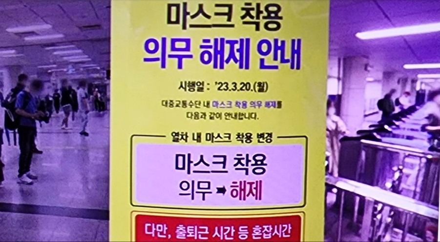 지하철을 포함해 버스와 택시 등 대중교종과 비행기에서의 마스크 착용도 자율의사에 맡겨진다고 합니다.