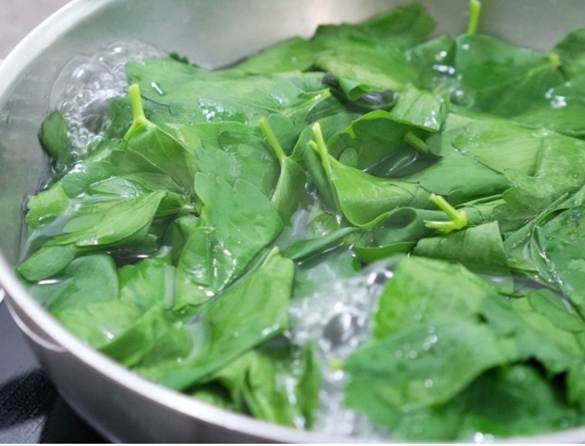 냄비에 물을 넉넉히 잡고, 소금을 한숟갈 넣고 팔팔 끓으면 손질한 방풍나물을 넣고, 나무주걱으로 저어 주고, 1분 데쳐서 찬물에 헹구어 소쿠리에 받친다.