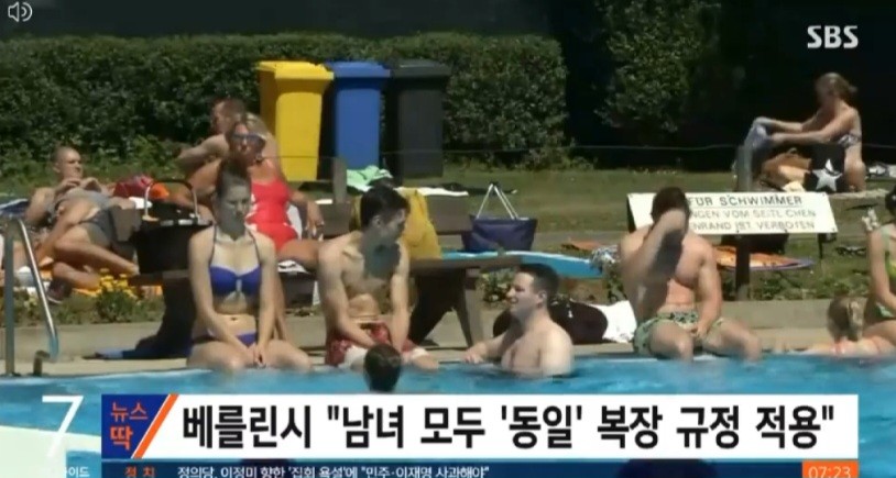'수영복도 남녀 차별'이다고 많은 여성들의 강력한 시위에 베를린 수도 관할 법원에서는 베를린시 "남녀 모두 동일 복장 규정 적용"은 허용한다고 합니다.