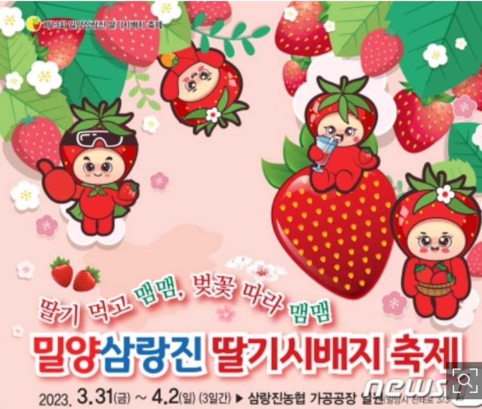 밀양시는 오는 2023년 3월 31일 ~ 4월 2일까지 축제를 개최합니다. 딸기 생산량이 전국에서 2위인 딸기 위상과 품질의 우수성을 널리 알리고, 대한민국 딸기 시배지인 밀양 삼랑진읍 딸기의 역사성을 홍보하기 위해 매년 열리고 있습니다.