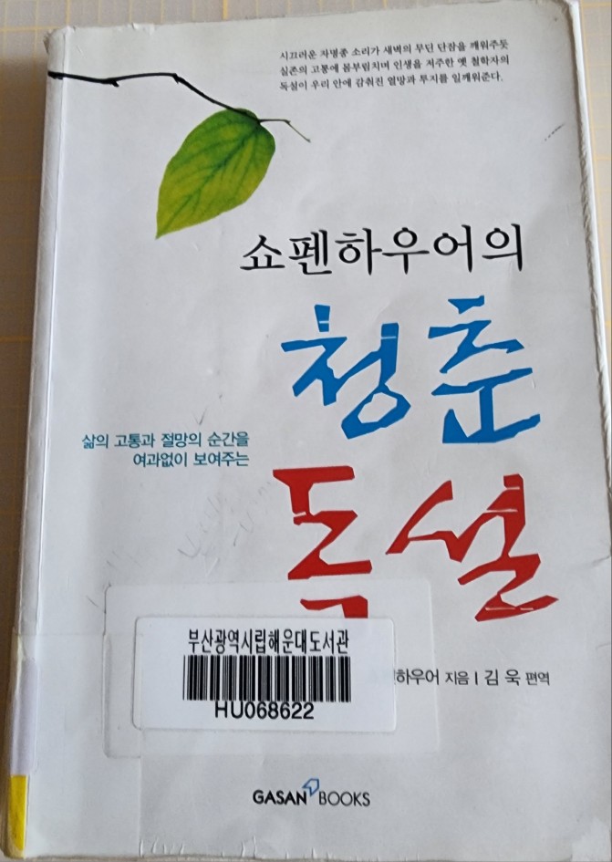 기성세대의 일원으로서 우리 시대의 청춘들이 겪고 있는 절망과 분노에 일조했다는 죄책감을 떨쳐버리기 위해 또 한 번 쇼펜하우어를 의지할 수밖에 없었다.