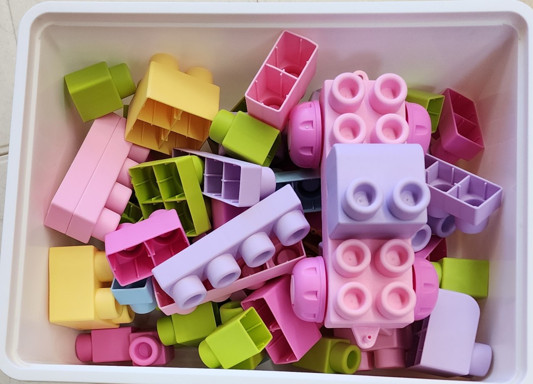 용기에다 장남감 종류별로 한통씩 담가두고 10분 두었다가 다른 용기에 건져서(장난감 종류가 많아 재활용하려고 세제물에 담겨있는 블록만 건져서 다른 용기에 옮겨서 세척한 거였고, 만약 한 번에 끝낼양의 블록이라면 세제 담겨 있는 용기를 양옆에 잡고 밀었다 당겼다 짧게 빠르게 흔들어 주면 된다).