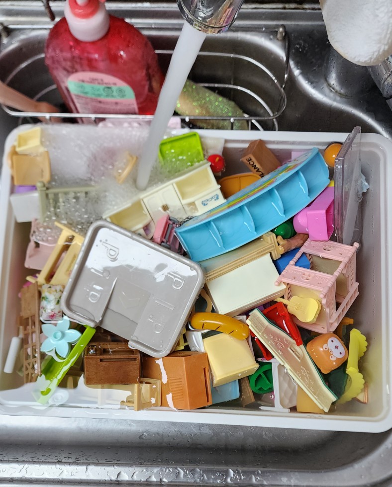 3) 소꿉놀이에 들어있는 작은 인형들은 세탁은 똑 같이하고, 햇빛 잘 드는 창틀에서 자연건조.