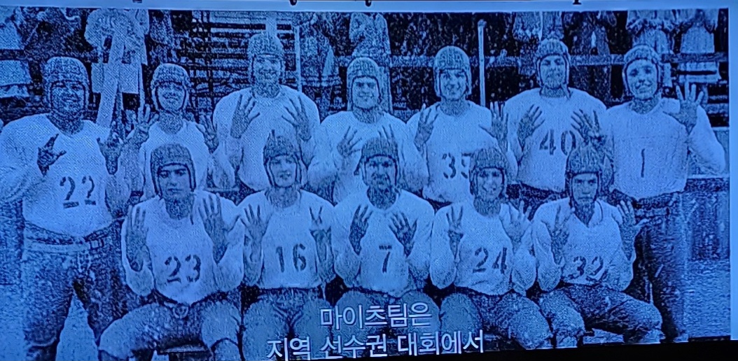 수업중에 보육원생들을 불려놓고 자신의 뜻인 계획을 말해 보지만 학생들의 반응은 해 보겠다는 의지는 보이지 않았고 그게 뭔지도 잘 모르는 것을 러셀은 설명을 해주면서 시험을 봐서 통과한 학생만 팀으로 구성된다고 말합니다. 그 수업내용은 핏볼 게임에 대한 이해도였습니다. <미식축구로 신대륙이 발견된 뒤에 유럽에서 가져 들여온 럭비와 축구를 혼합한 경기로 미국에서 독자적으로 만든 스포츠이고, 풋볼 경기의 규정을 보면 1)한 팀의 선수는 11명으로 각자의 포지션만 담당한다. 2) 게임이 시작되면 한 팀은 공격, 다른 팀은 수비를 맡는다. 3) 공격팀은 4번의 시도 안에 10야드를 전진한 다음, 공격권 플레이를 성공시켜 터치다운을 하거나, 필드 골을 성공시켜야 한다. 4) 수비팀은 점수를 내주기 전에 공격을 막아낸다. 5) 옆으로 하는 패스와 후진패스, 전진패스도 가능하다. 6) 따라서 공을 들고 있지 않은 사람에게도 태클이 가능하다. 7) 미식축구의 정체성은 상대팀의 엔드까지 어떻게 도달하는 가에 있다. 이를 위해 커터백의 통솔아래 고도의 전술, 전략이 필요한 스포츠가 되었다. 8) 15분씩 4쿼터로 운영되며 총 60분이 소요되지만, 경기의 특성상 가다 섰다를 반복하기 때문에 보통 2시간 30분 정도 경기가 진행되는 경우가 많다. 9) 타원형으로 생긴 풋볼 공은 어디로 튈지 모르는 속성이 있어 경기에 묘미를 더한다. 러셀은 경기에 대한 규정을 설명하고 공부하게 한 뒤 시험을 봐서 12명의 풋볼팀을 결성하게 되지만, 선수들은 첫째 누구를 신뢰하는 마음 자체가 없는 아이들에게 어떻게 자신을 믿으라고 가리켜야 될지 막막해하면서 우선은 12명의 팀을 6명으로 두 팀을 만들어 서로 게임을 해보라고 시키게 되는데 서로 싸우고 엉망으로 만들어 버립니다. 하지만 러셀은 처음부터 이런 사태를 알고나 있었는 듯 팀 중 제일 힘이 센 학생을 훈계하고 벌칙을 주게 되면서, 팀은 다시 자리를 잡아가고 있었지만 한편 보육원생들은 인쇄소일도 해야 합니다. 조금만 잘 못해도 심한 매질을 견뎌야 합니다. 그리고 보육원생들은 겨울이 아니면 신발이 없어 맨발에 살아야 하는 그들의 열악한 환경을 본 러셀 선생님은 더욱더 원생들에게 꿈과 희망, 용기를 주고자 한 명 한 명 제대로 된 선수로 키우고 있었습니다. 몸이 안되면 정신으로 이길 수 있도록 말입니다. 그렇게 각자의 자리에서 제법 잘하고 있었고 원생들도 제법 고치를 신뢰하고 있었습니다.